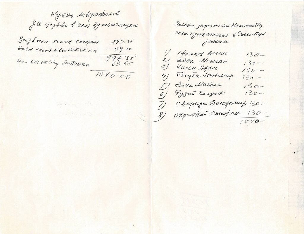 Fundraising by Ukrainian Immigrants for Putyatyntsi, Ukraine: 1958-1992